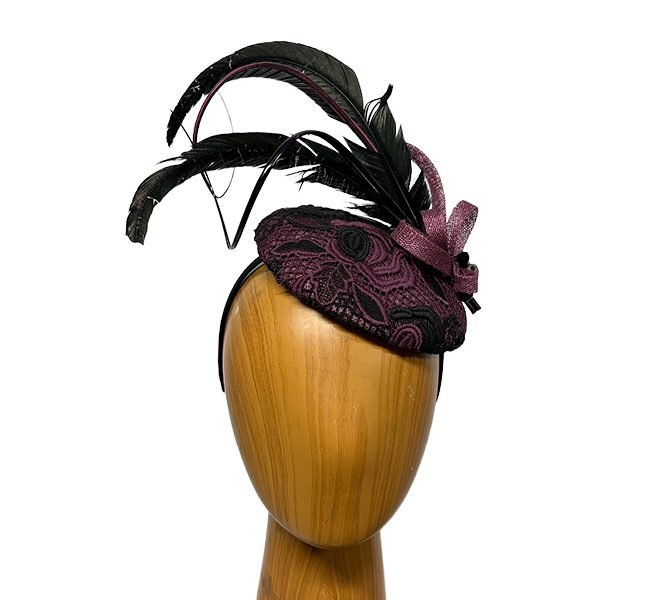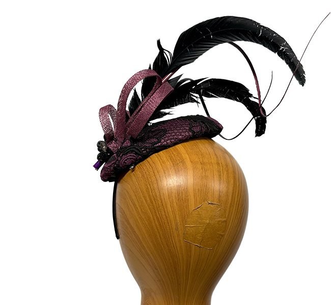 black purple feathered fascinator