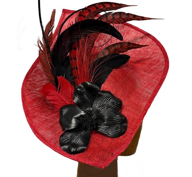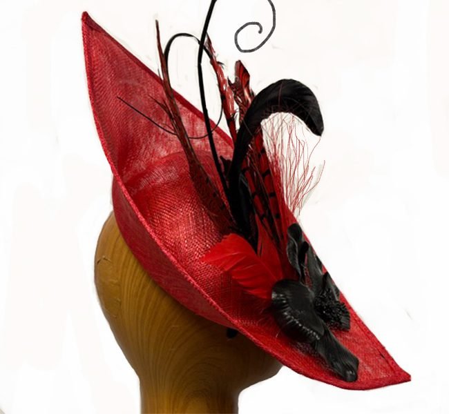 red black angled fascinator