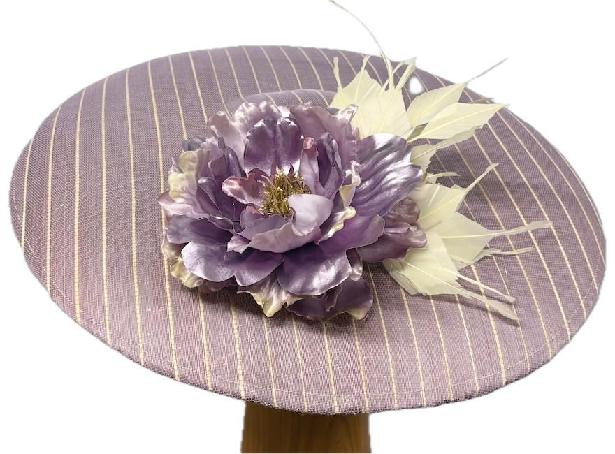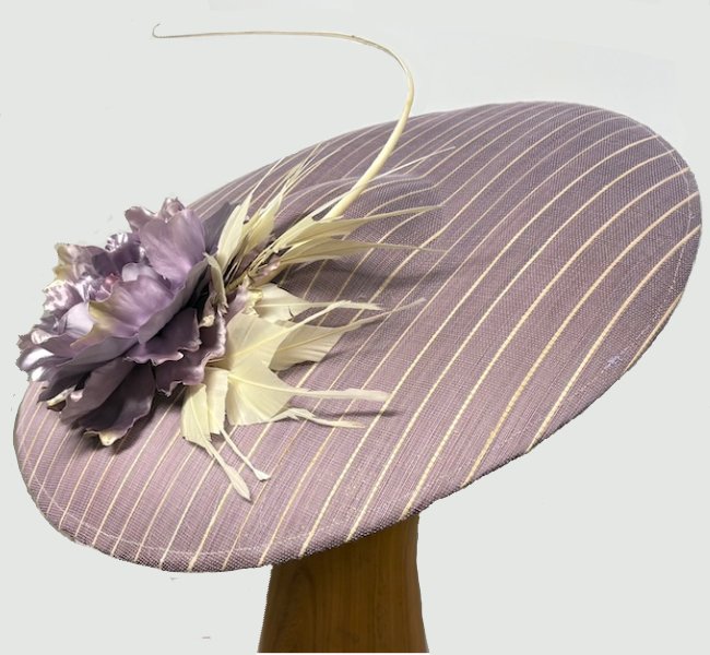 Mia lilac striped fascinator hat