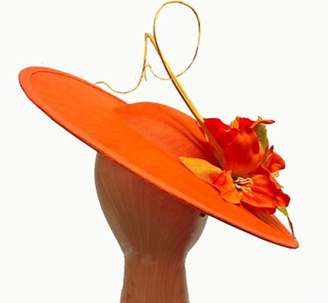orange flowered fascinator hat