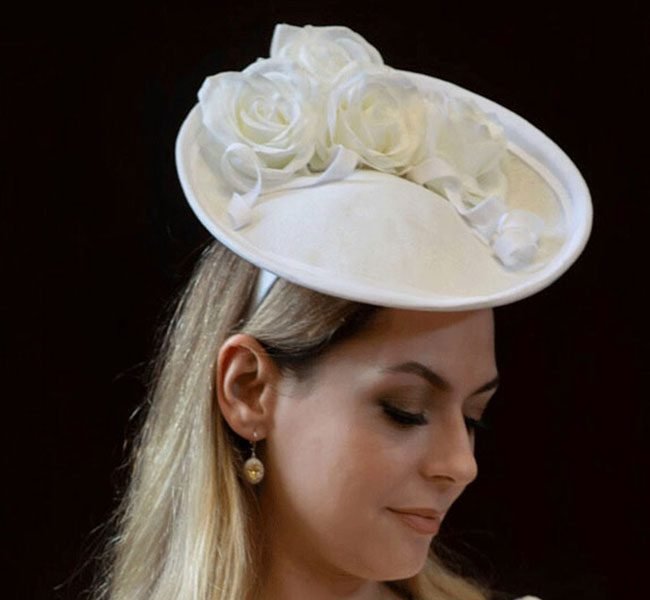 For the most flattering look, I suggest positioning this white ivory flowers fascinator slightly down on the right side of your head.