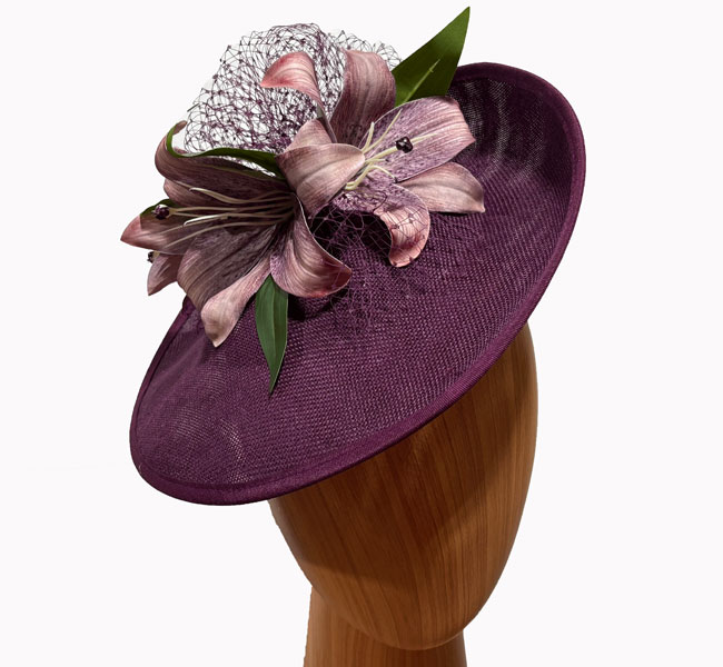Bianca eggplant lily netting fascinator