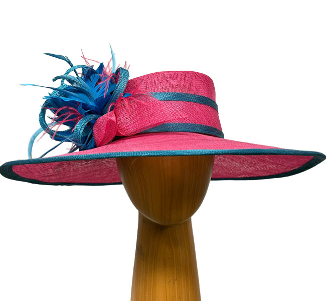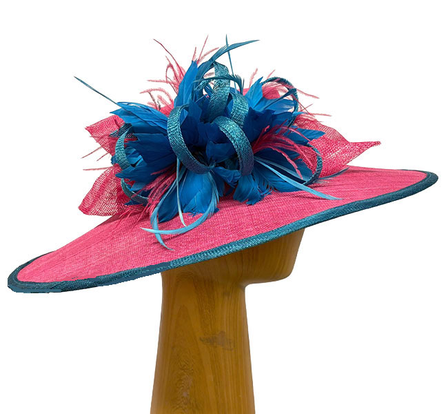 Camilla pink turquoise feathered hat