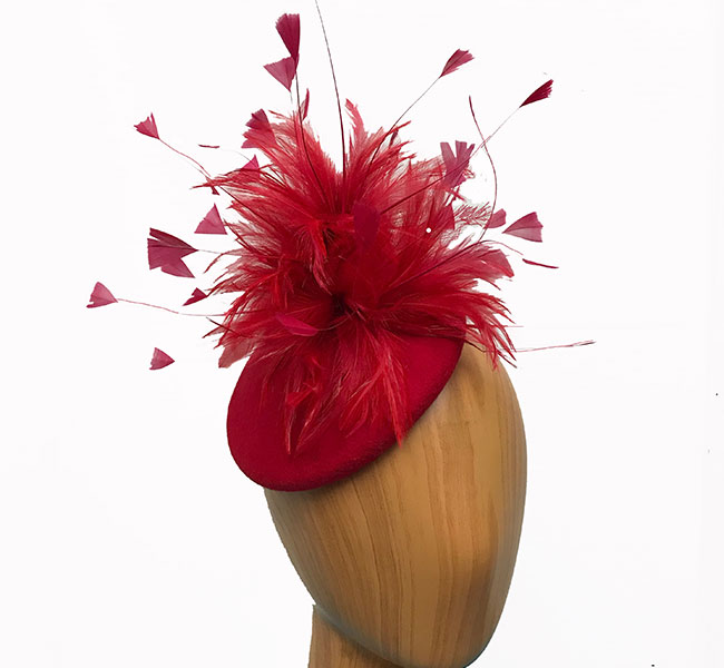 red wool feathered fascinator